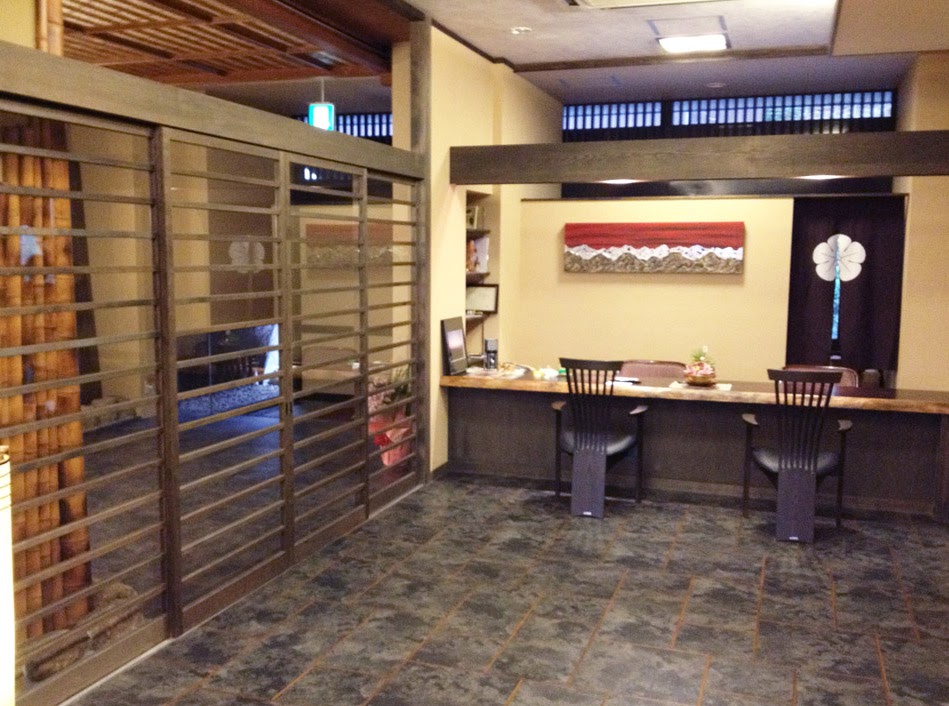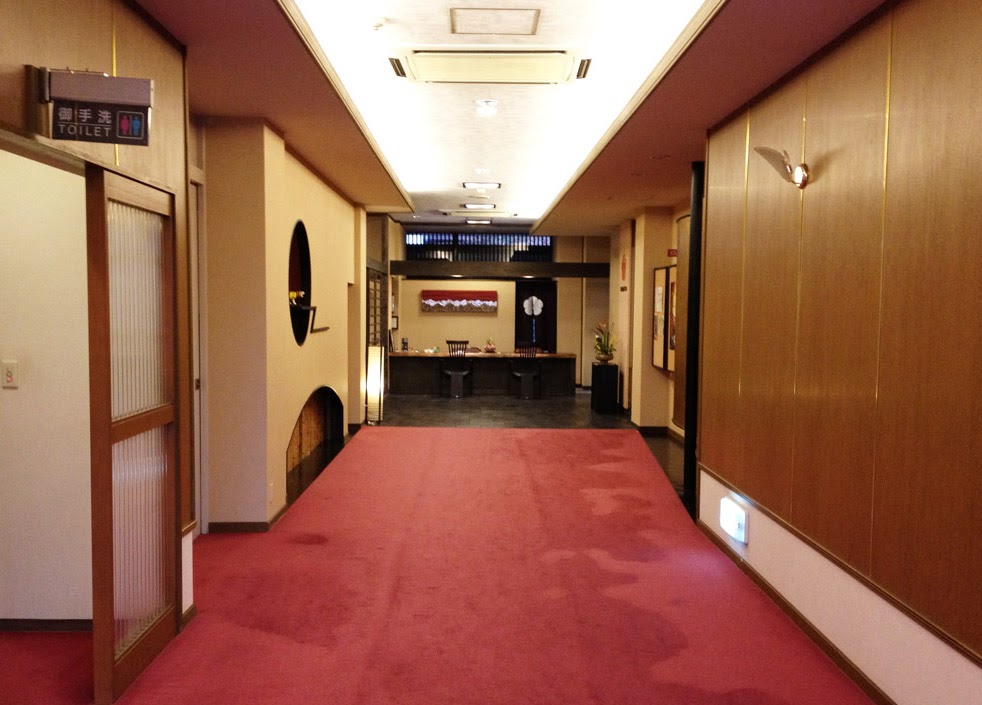 一走到門口就有位親切的女將出來帶領我們進櫃台,Check in之後女將帶我們去大廳坐一會兒,櫃台到大廳中間的紅地毯應該也是有點年代的東西,因為似乎被飲料等等弄的色澤不平均了。