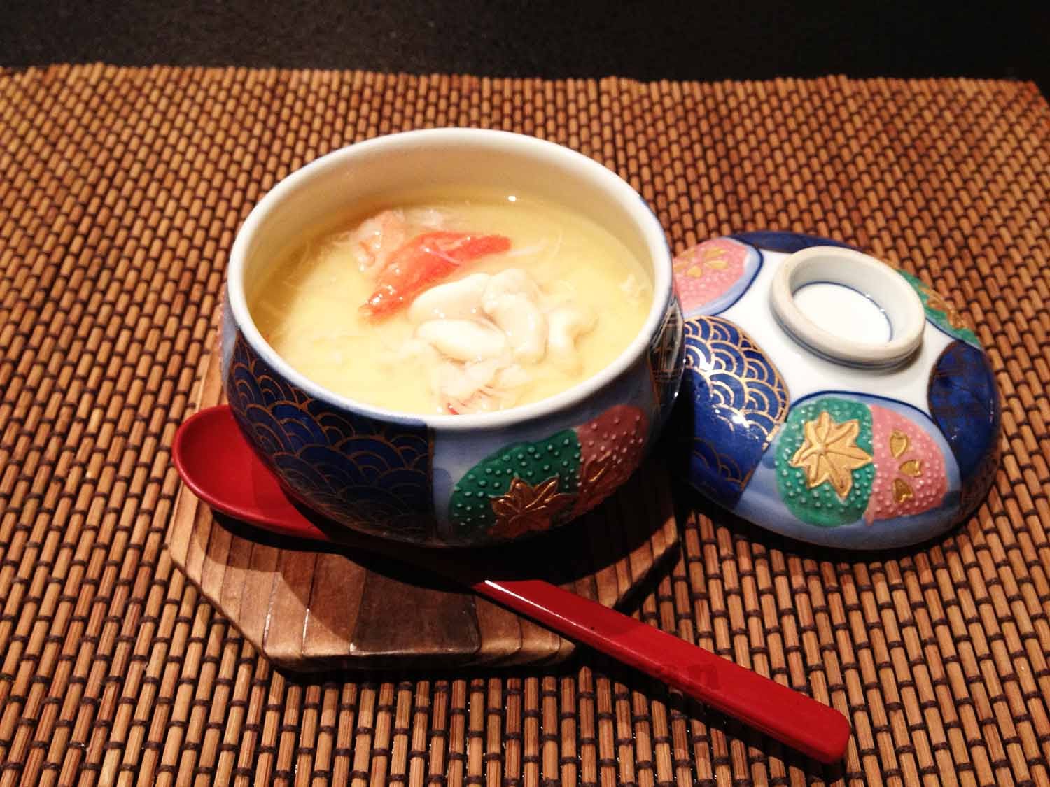 第3道菜是蟹肉茶碗蒸。蟹肉放的很有誠意,而蒸蛋的部份也非常的軟嫩。而茶碗蒸的底部放了一個不知為何的食材,個人是非常喜歡,女友就不太能接受了。