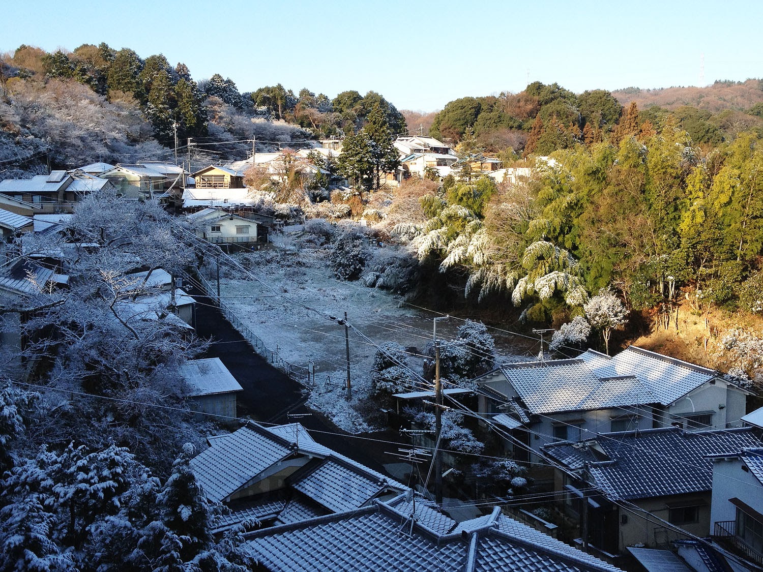 前一晚下的雪把整個信貴山染成了白色,而我也趁雪還沒溶掉前又泡了一小時的澡享受了一番。
