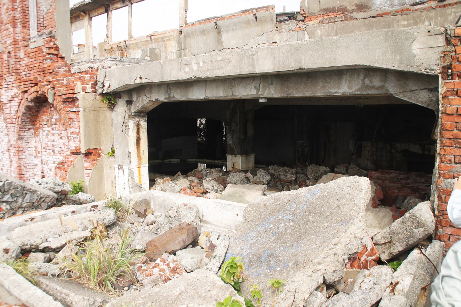如照片,電影院只剩下像是大門的結構,其他都已經變成瓦礫了。