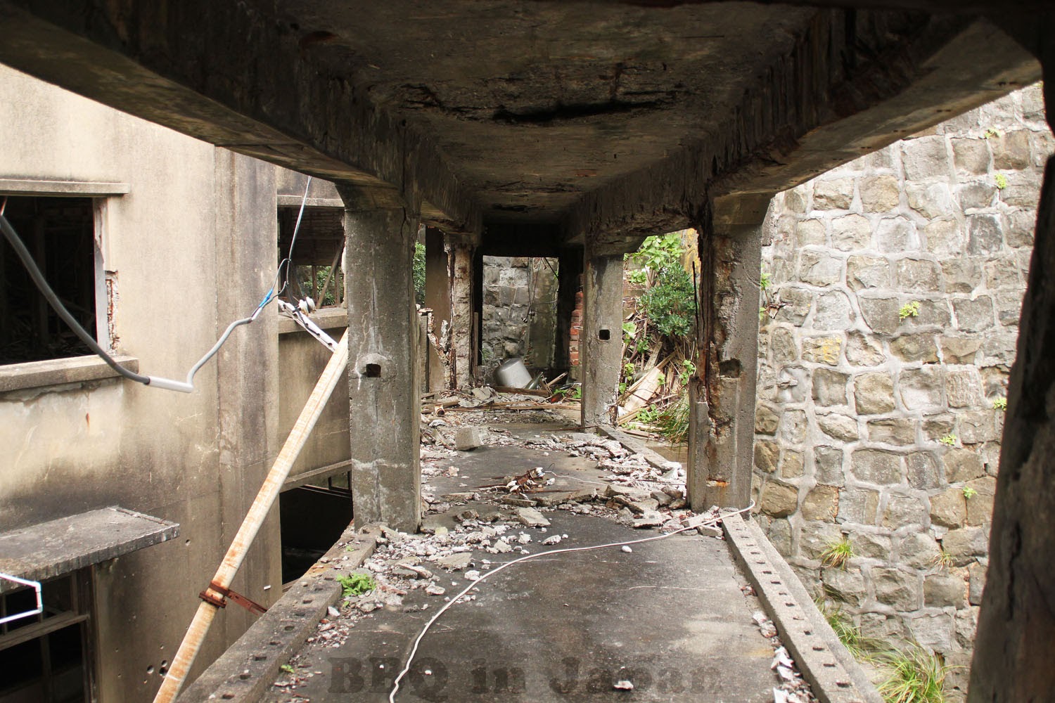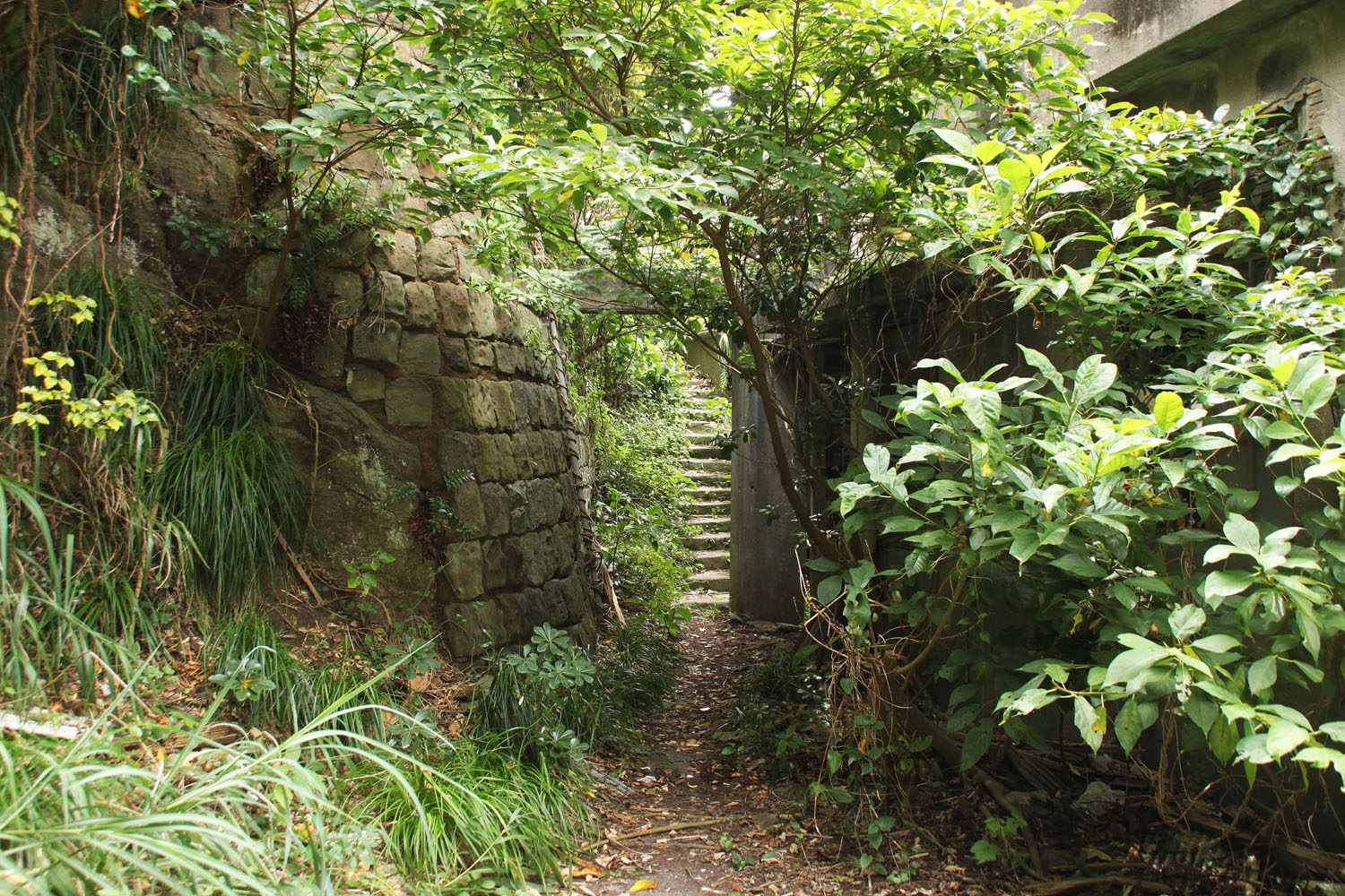 這一段路會經過16號棟(鑛工宿舍-1918年)、57棟號(鑛工宿舍-1939年)、56號棟(鑛工宿舍-1939年)、17號棟(鑛工宿舍-1918年)、18號棟(鑛工宿舍-1918年)、19號棟(鑛工宿舍-1918年)、2號棟(鑛工宿舍-1950年),最後抵達1号棟(端島神社-1936年),這也是整個島上最像是在秘境探險的小徑(30號棟只有恐怖)。走這一段時會莫名的尊敬以前在這島上開發的人們,雖然談不上都市計劃,能夠在100年前就規劃成這樣實在很了不起。