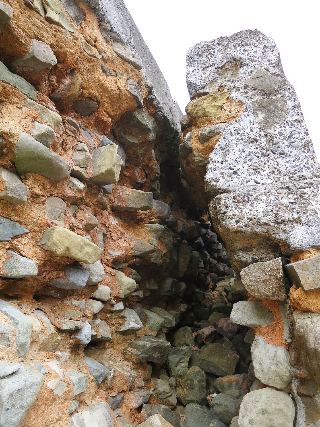 這裡可以看到有部份的岸壁已經損毀的很嚴重,除了表面已經剝落的岸壁之外,也有些已經是已經剝離的狀態…感覺就這樣放著應該10年左右就會剝落。