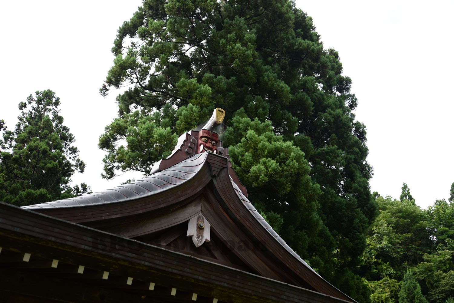 神樂殿上的鬼瓦是個笑開懷的生剝!非常可愛XD