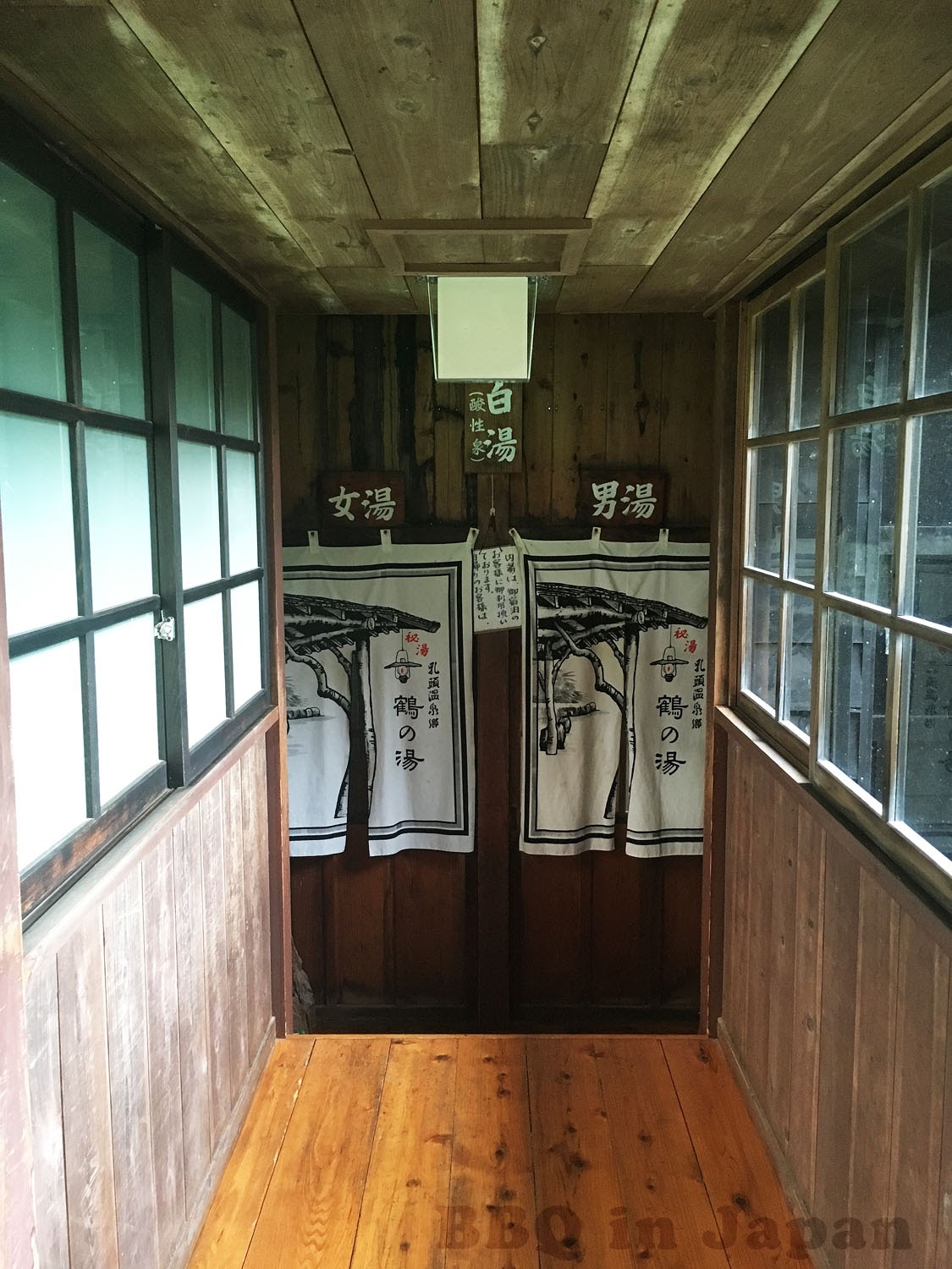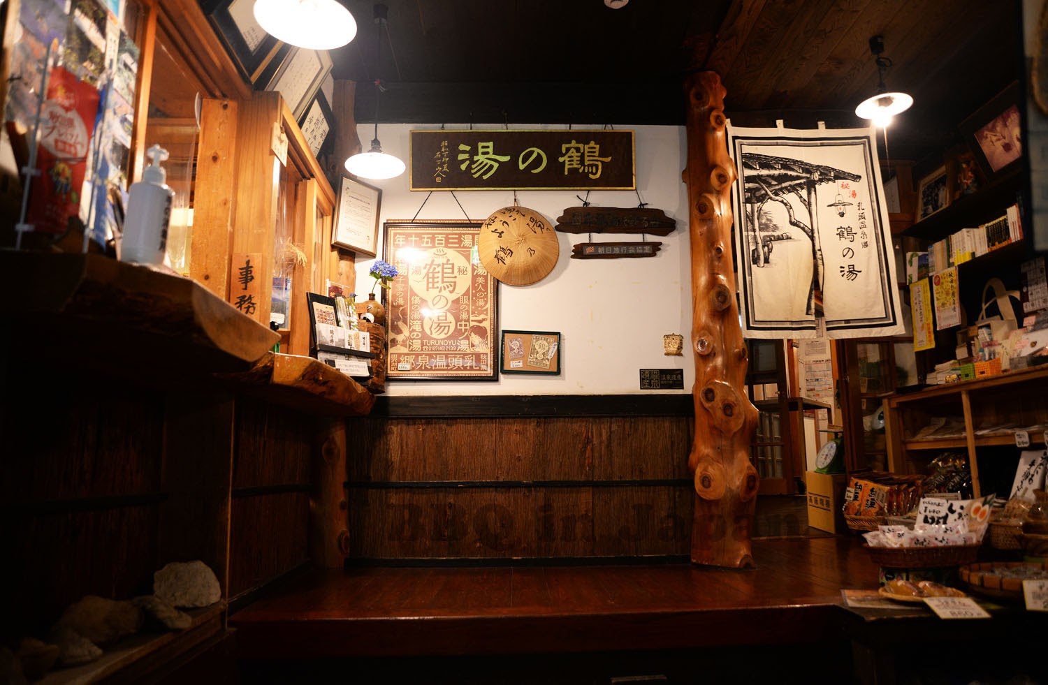 鶴之湯溫泉最早的泡湯紀錄是在1638年,入口處放眼望去是一整排古早味木造建築。