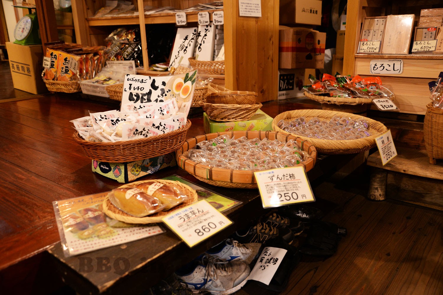 腦波弱的我們不小心就買了うま芋ん(甜薯),ずんだ柿(毛豆泥柿子)、柿餅、泡澡劑、秘湯洗髮精…