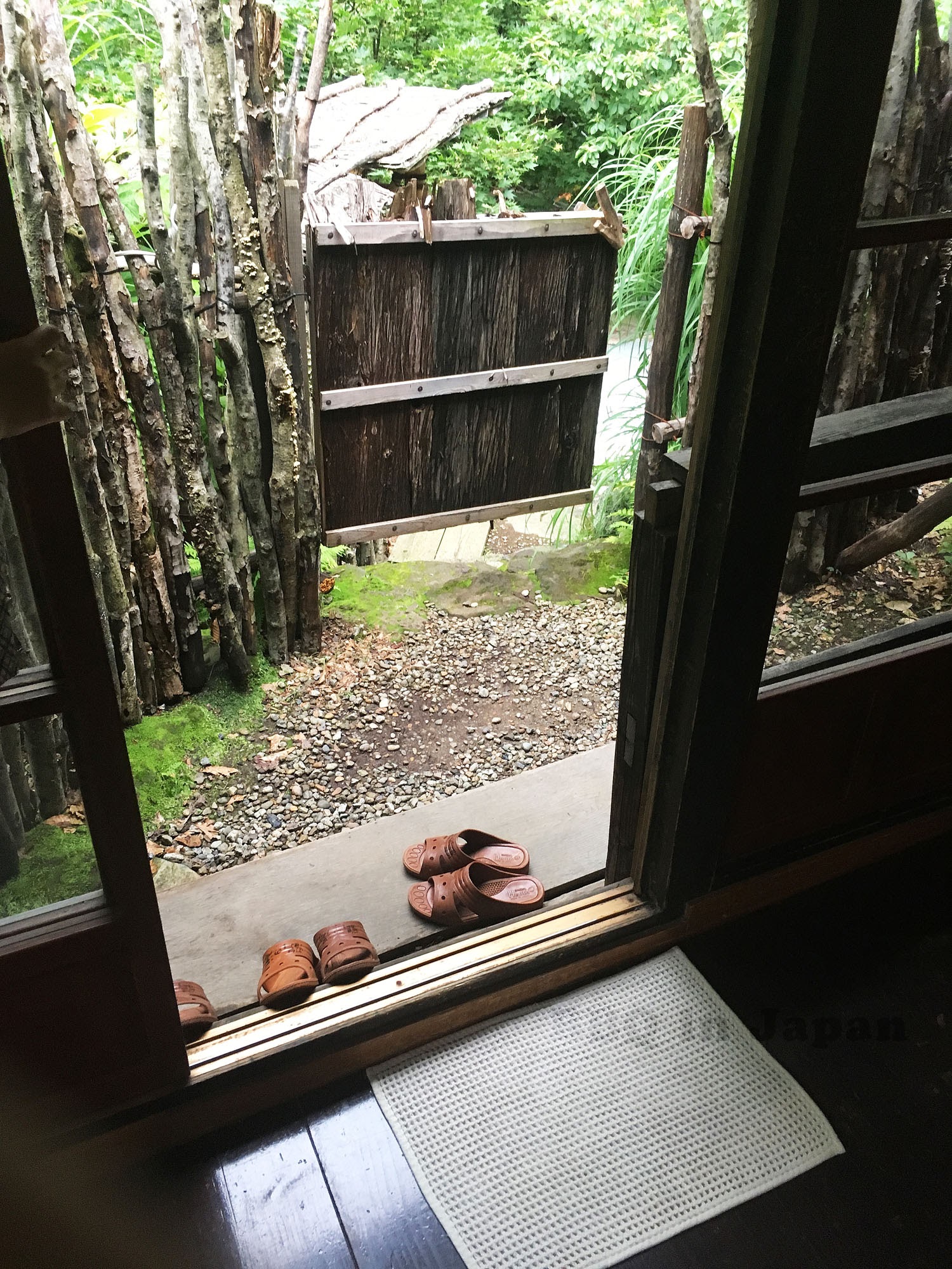 3個私人溫泉中我們最喜歡的當然是露天溫泉,即使泉質跟別的溫泉沒兩樣,被大自然包圍的神秘感配上一旁的小溪後整個就不一樣了!另外我覺得這個露天溫泉的水溫,體感上比大家一起用的露天溫泉的水溫還要高。