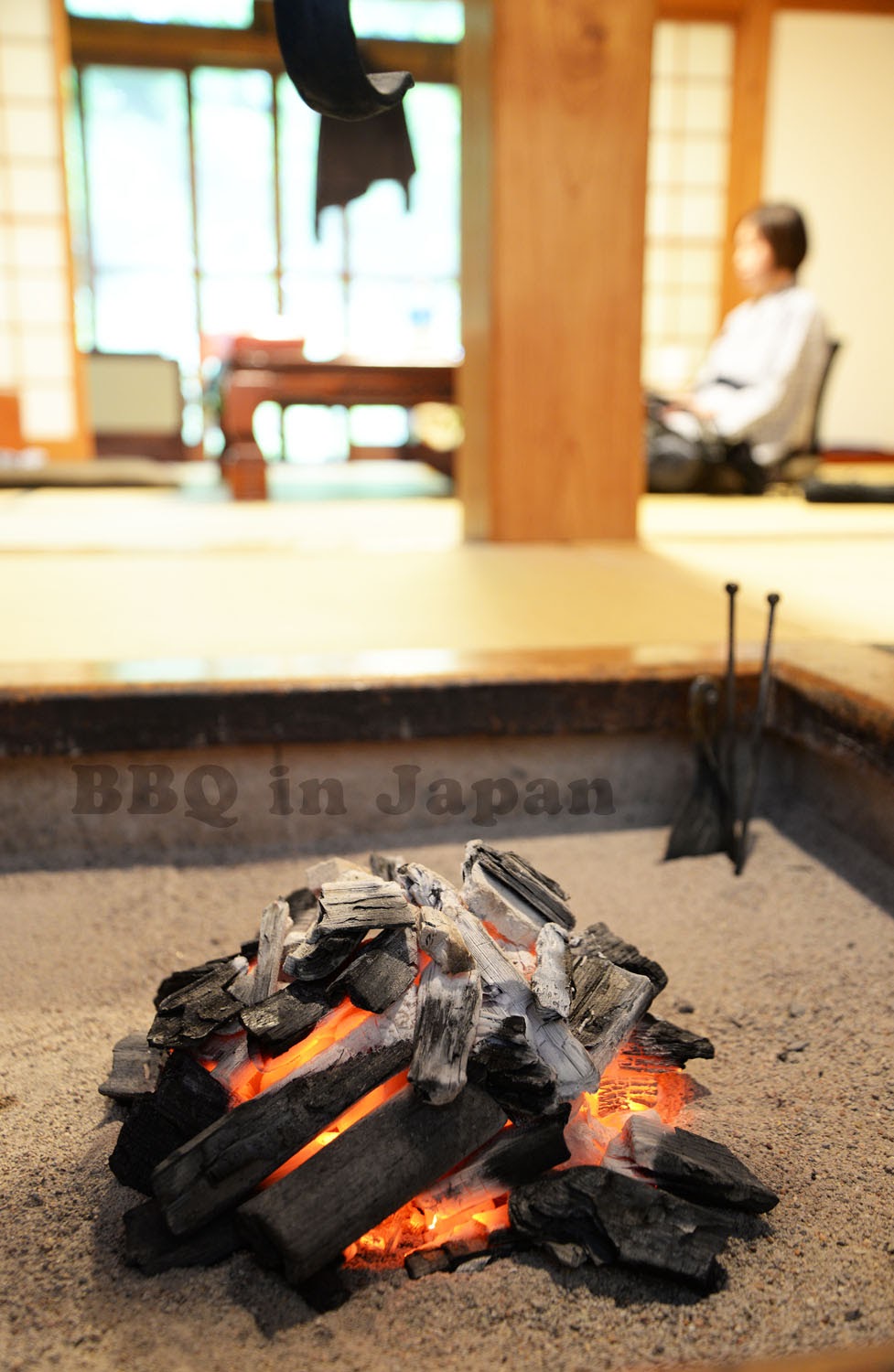 雖然造訪時是7月盛夏,因為鶴之湯是位於深山中,平均高溫大概只有25度,低溫也只是有十多度,所以就算燒炭也不會讓人覺得熱。