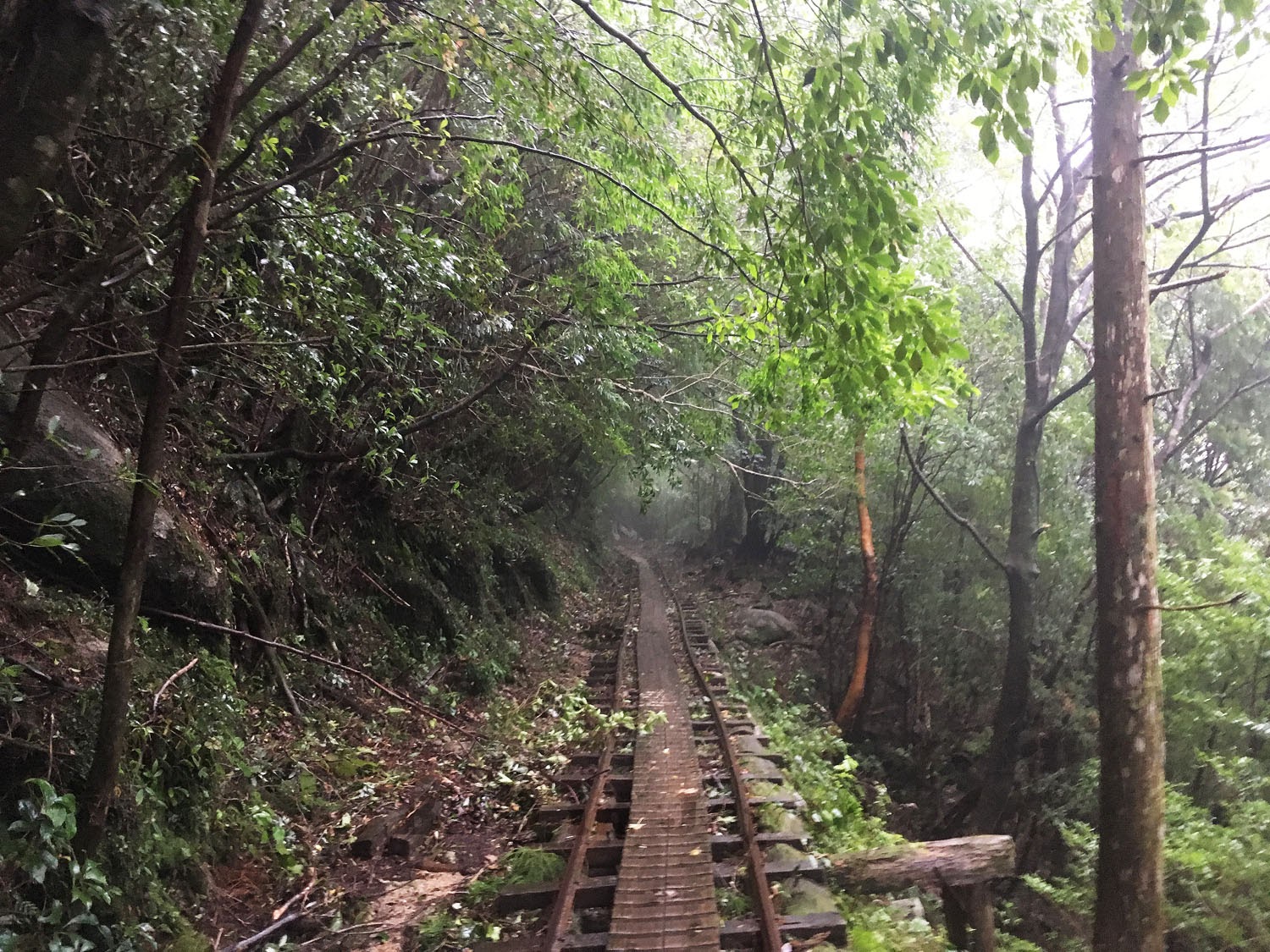 從荒川登山口開始到縄文杉的路程約11公里,前半段有8公里的鐵路絡線,